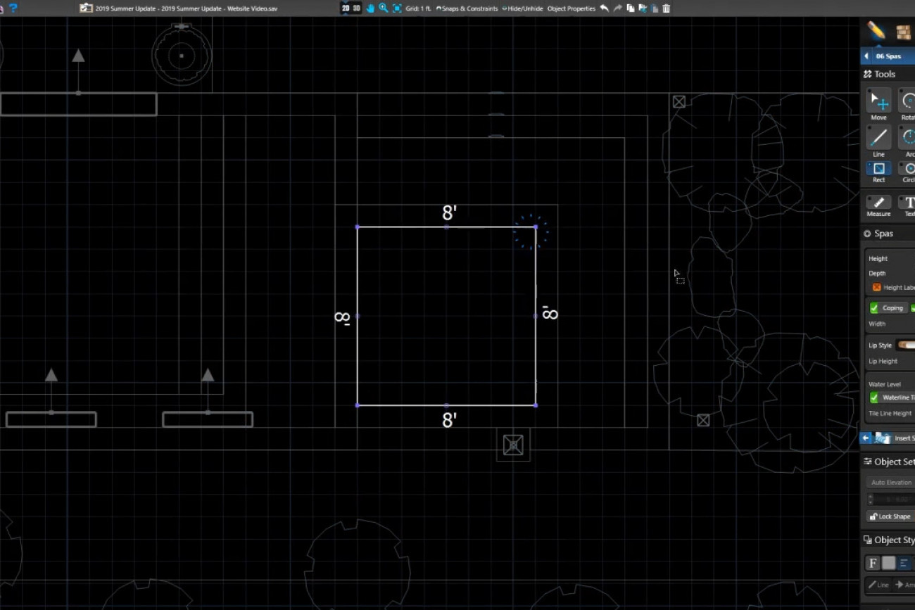 Get precise, accurate measurements for your installers — in just one click. Any project, any size, any scale: it takes just one click to layout pools and hardscape. The Triangulation and Centerline Rulers included with pool and landscape design software make it easy to instantly edit, adjust, and rotate your automatic, precise measurements.
