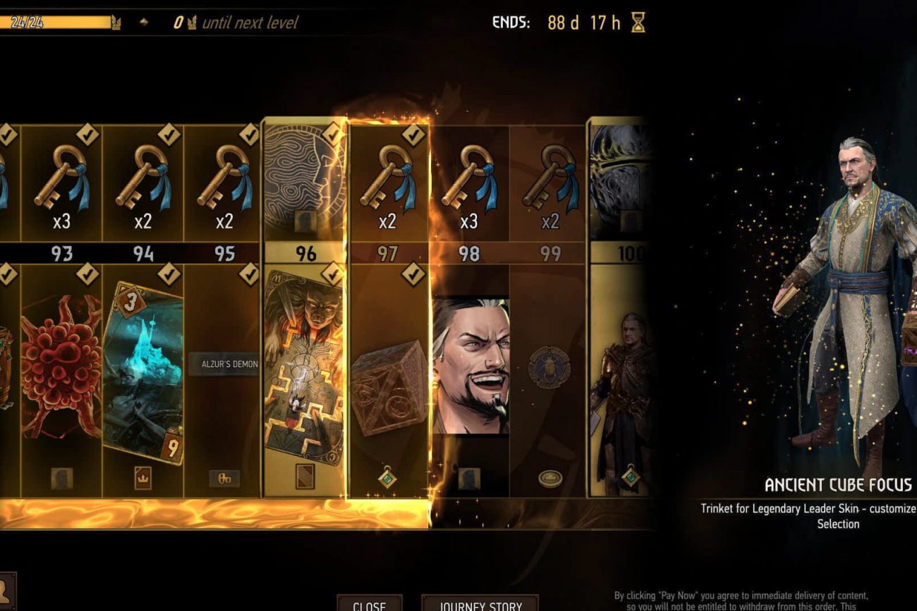 A fair and fun progression system turns the effort of building a competitive collection of cards into pure pleasure — simply collect new cards to build decks with as you play GWENT; no strings attached.